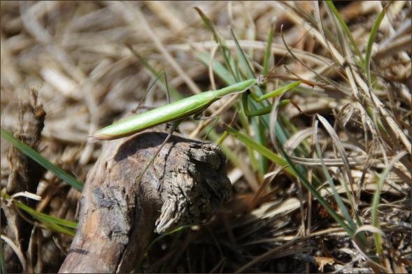 große Gottesanbeterin aus der Spalte der Motorhaube an Philipps MR2 heraus. Nachdem wir auch sie fotogen ins Bild gesetzt haben, setze