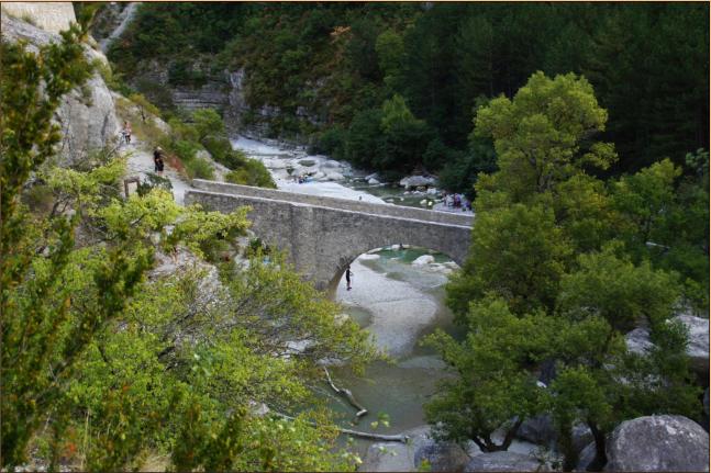 Das Zentrum der Schlucht bildet eine alte Brücke mit einer Badestelle. Uns gefällt es gut hier und wir machen eine ausgedehnte Mittagspause