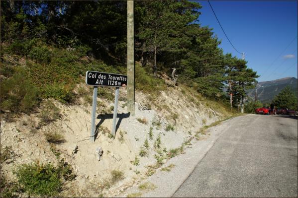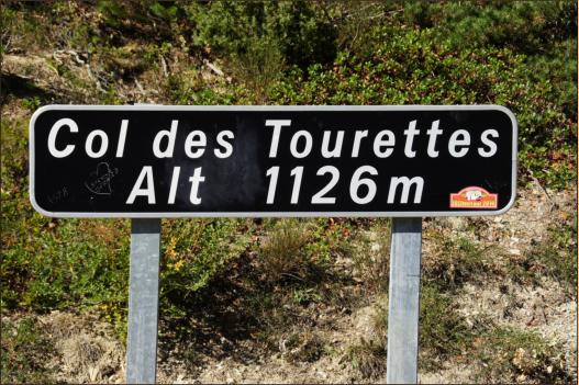 Westen. Neben der Strecke liegt der Col des Tourettes. Alleine schon wegen des Namens machen wir einen kleinen Abstecher