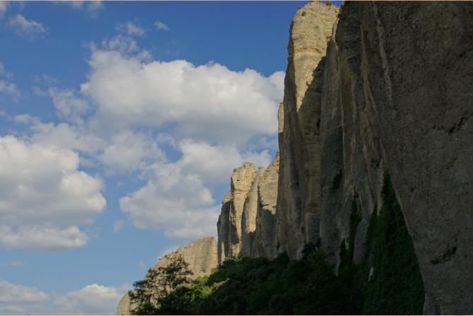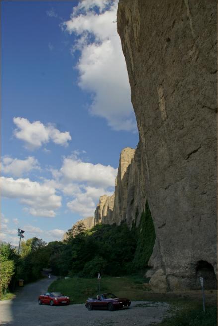 Dies ist eine imposante Felsformation aus stark verwittertem