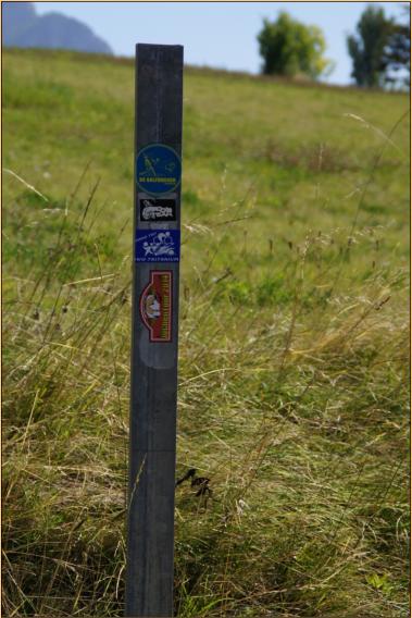 Der Col de Pontis ist unscheinbar und leider fehlt das Passchild ... geklebt wird trotzdem :-)