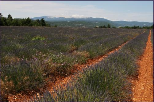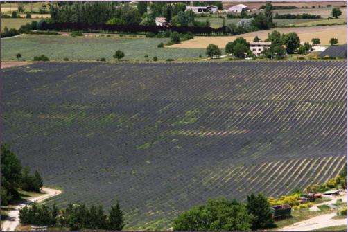 Auf der größten Höhe der Straße hat man dann plötzlich einen fantastischen Blick über Lavendelfelder auf den