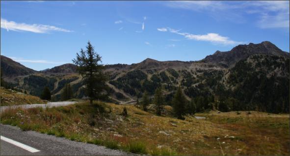 Als Grenzpass nehmen wir den Col de Larche. Obwohl fast 2000 m hoch ist er ein sehr unspektakulärer Pass mit einer fast eintönig